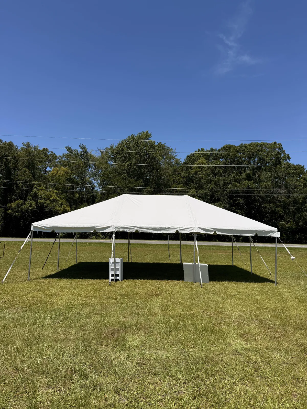 All of our tents are secured with stakes and ratchet straps. Setup and tear down is included in the price!